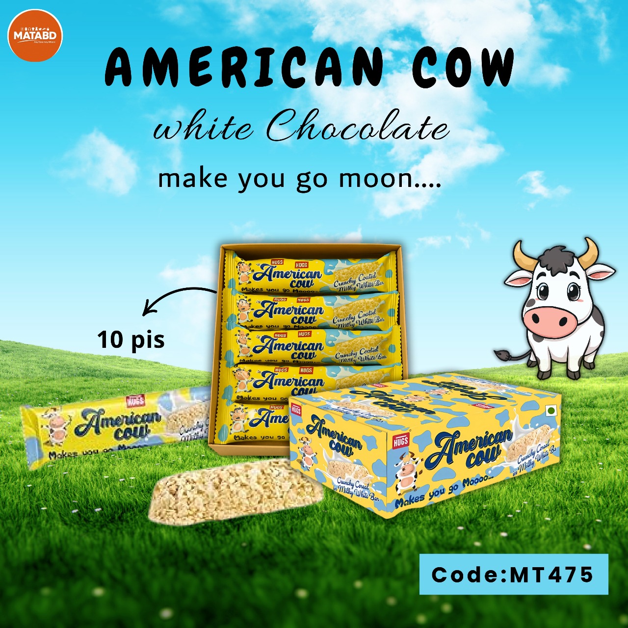 🍫 HUGS American Cow Chocolate – A delicious Milky White Bar of Milk, Chocolate and Oats! Every bite will have a sweet taste and an energy-filled feeling! 🎁 Special 10 Piece Combo Offer – Don’t Miss Out!